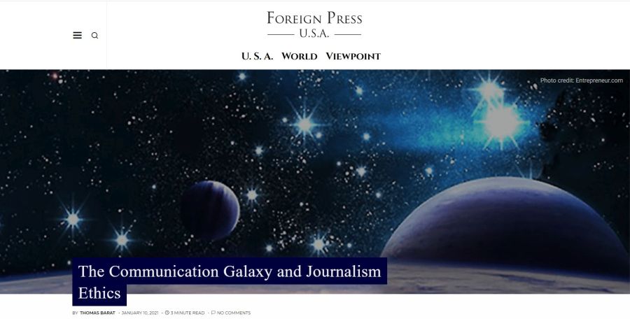 The Foreign Press asked Thomas Barat, Director of Ethics and Compliances of Association of Foreign Press Correspondents USA, and the Editor in Chief of the eCCO Magazine, about the ethics of journalism, the role of the correspondent. Thomas Barat summarized his answer as follows: “When you speak, what you say, should be always the truth, …