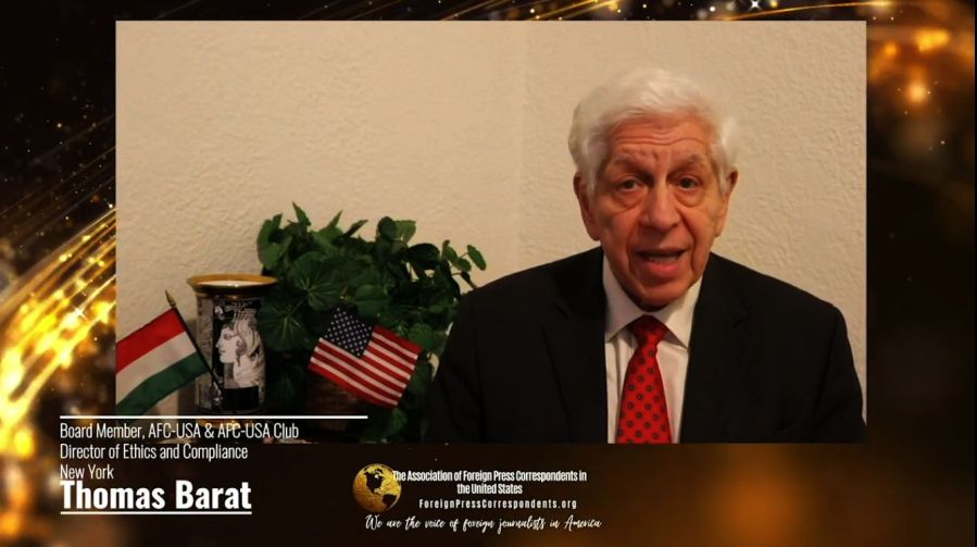 Thomas Barat, Director of Ethics of the Association and the Club of Foreign Press Correspondents (AFC-USA) addressed the live streaming annual Awards and Scholarships Ceremony held on 22nd, 2020.