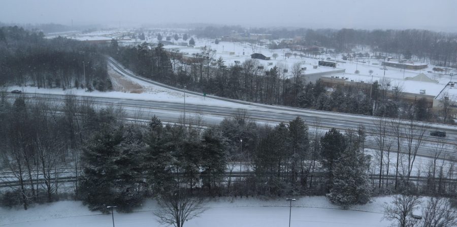 Rarely seen snowfall began on the Virginia Massachusetts line on the last weekend of January. Same road and same parking lot twice - before and during snowfall